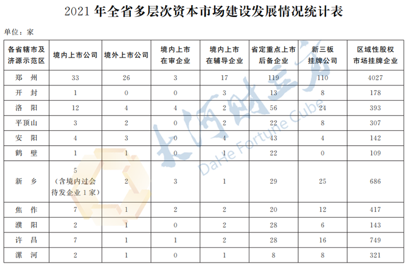 【大河報·大河財立方】(記者 裴熔熔)1月26日,河南省地方金融監督管理局通報2021年全省多層次資本市場建設發展情況。通報顯示,2021年,河南省資本市場服務質效全面提升,企業上市進程加快,新增上市公司數量創歷年新高,多層次資本市場穩步發展。具體來看,主要呈現以下幾大亮點。
