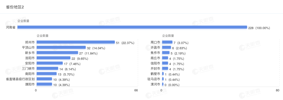 從地域分布來看,鄭州市冰雪運動相關企業數量位居前列,有超50家企業,均占全省總量的22%,平頂山和新鄉兩市緊隨其后,分別以超30家和超25家相關企業位居二、三位。