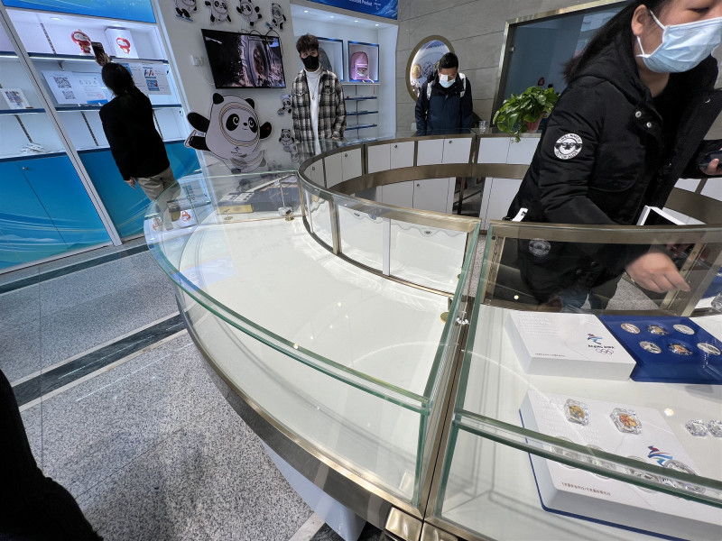 9日上午,記者在位于經三路豐產路交叉口附近的冬奧會特許商品零售店前看到,玻璃門上張貼著“冰墩墩報名登記”二維碼,店內一側的冬奧會主題展區內,貨架和柜臺中的冰墩墩已被搶購一空,不少“求墩不成”的市民在店內咨詢其他冬奧商品。